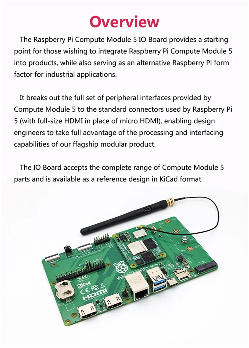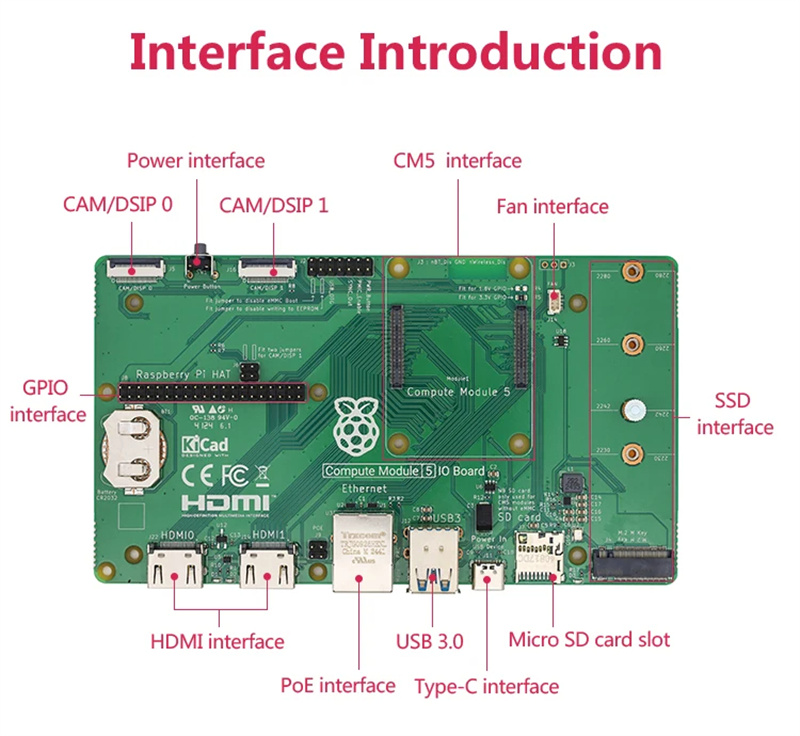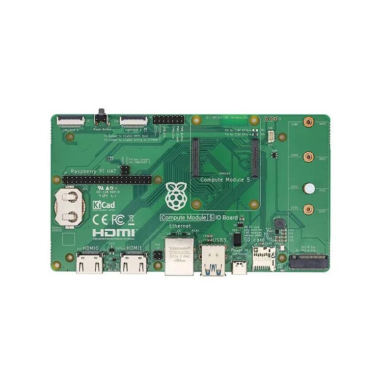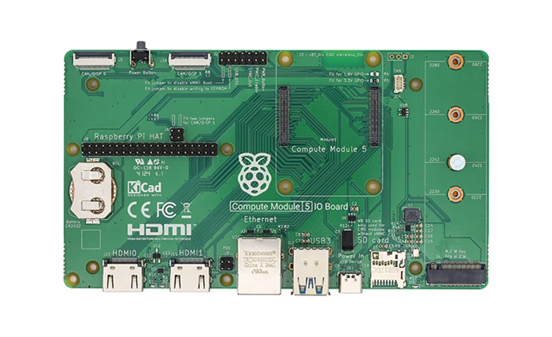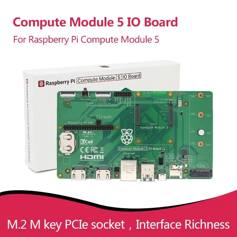 It features a microSD card socket for Compute Module 5 Lite modules and an M.2 M key PCIe socket, providing flexible and expandable storage solution for diverse application needs.
