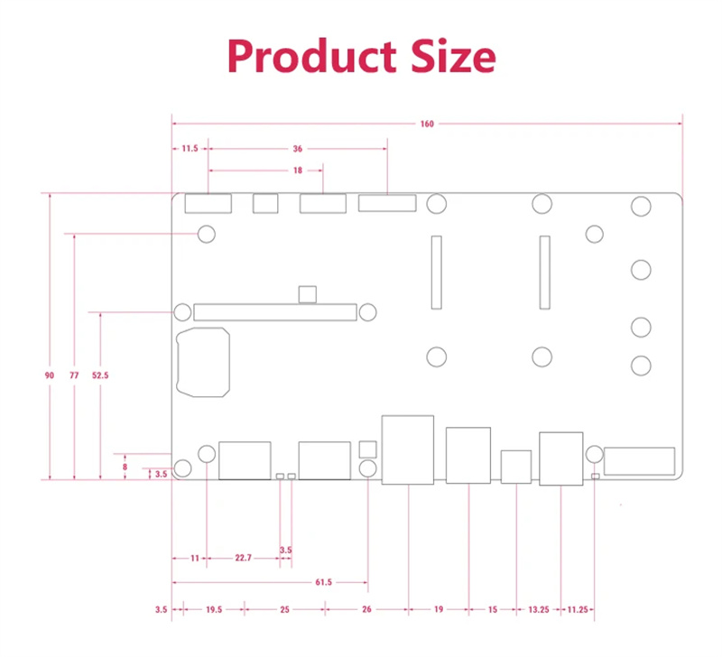 The board includes a 4-pin fan connector and an external +5V USB-C PSU with a power button, allowing reliable cooling and easy power management for seamless operation.