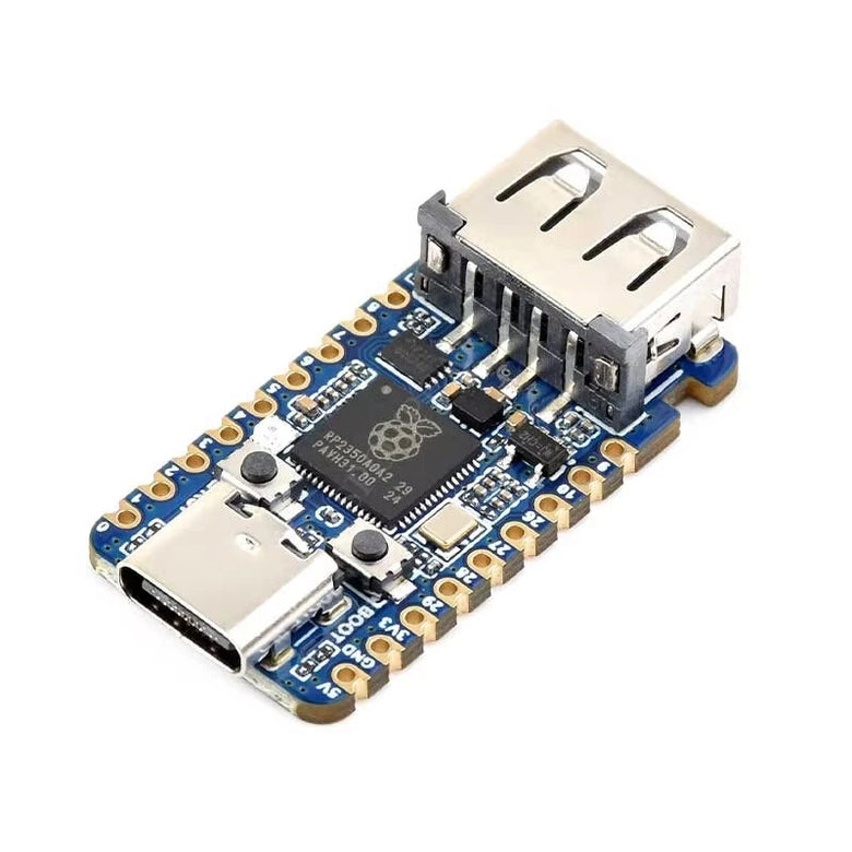 1. It uses the RP2350A microcontroller chip designed by Raspberry Pi.