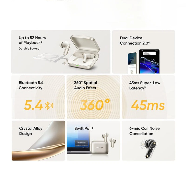 4. Rapid Connectivity & Low Latency: bluetooth 5.4 for swift pairing (Swift Pair) and a low latency of 45ms, ideal for gaming and video calls.