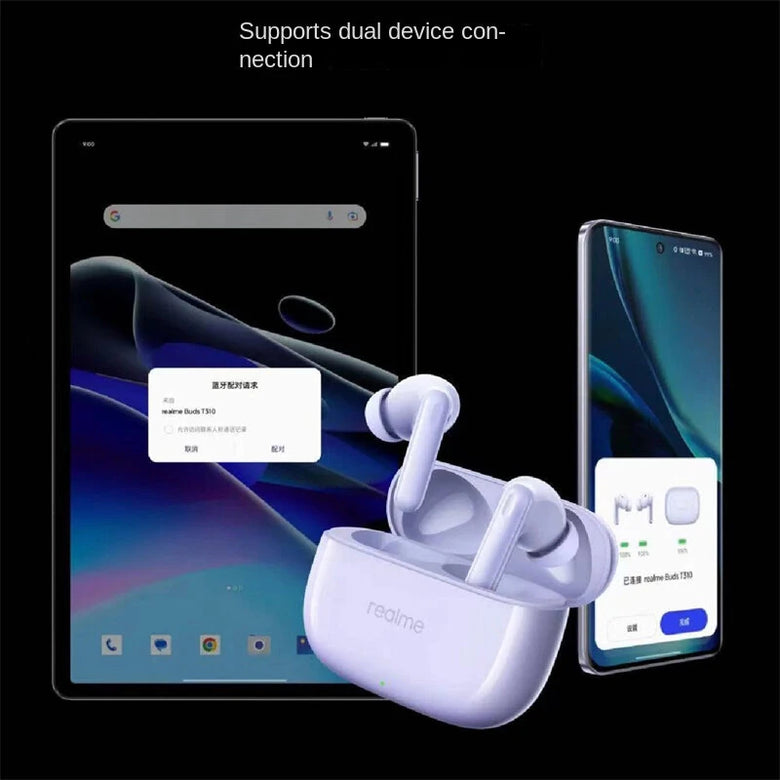 Realme Buds T310 bluetooth Headset Wireless ANC Earphone 46dB Depth Noise Cancelling AI Call Noise Reduction 3D Surround Sound 40H Battery Life Low Game Delay In-ear Sports Headphones