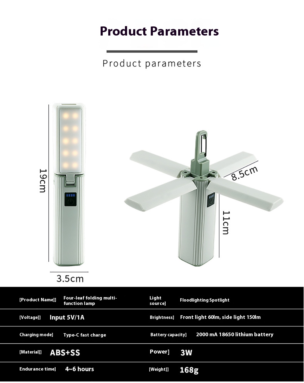 - Innovative Foldable Design: The unique four-leaf foldable mechanism allows for compact storage and easy portability. Perfect for camping, hiking, reading, or as a general utility light, it unfolds to provide ample lighting and folds away for convenient transport.