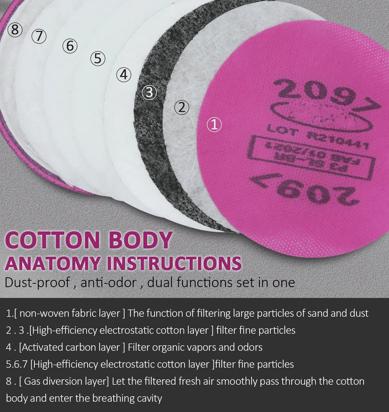 Equipped with a dual filter system, the respirator ensures superior air purification, effectively blocking dust, fumes, and other hazardous particles, making it suitable for environments with heavy pollutions.