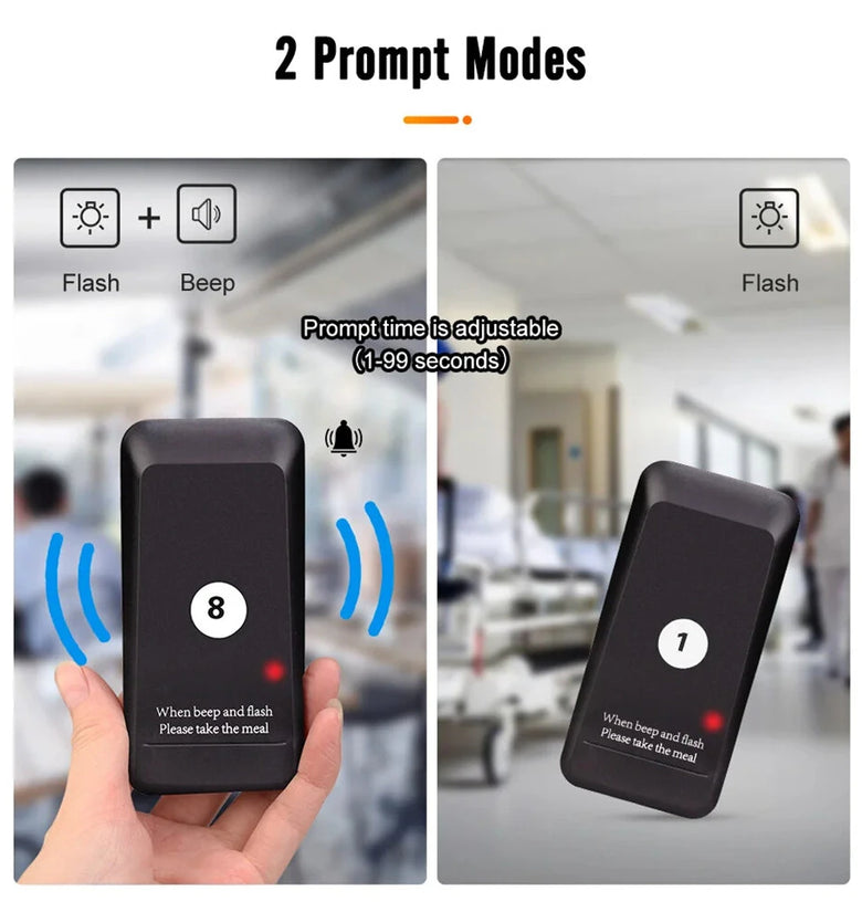 1. Customizable Alerts: The TD157 pager system offers two prompt methods - Flash and Flash + Buzzer. You can easily customize the alert settings to fit your specific needs, ensuring an effective communication system.