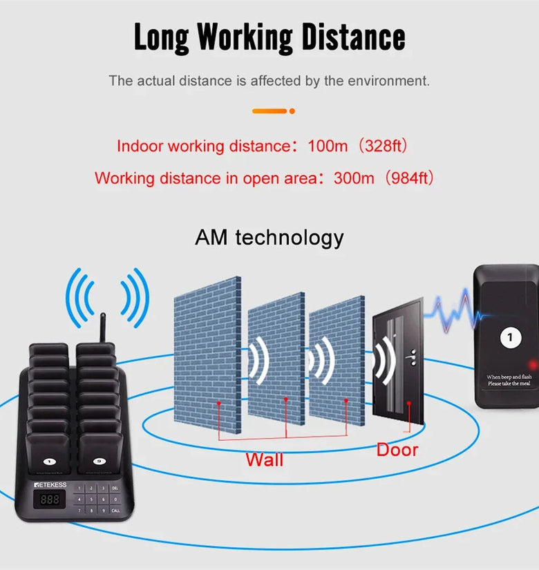 5. Reliable Communication: With a transmission distance of about 300 meters in an open field, the TD157 ensures reliable and timely communication between staff and customers, enhancing overall service quality.