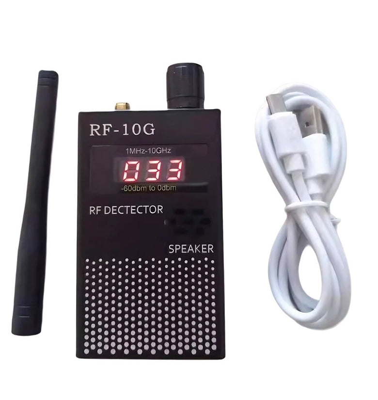 RF-10G Digital RF Detector Wireless Signal Strength Meter 1MHz-10GHz High Sensitivity Adjustable Alarm Rechargeable Battery Portable