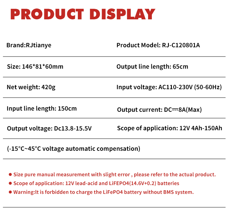 Scope of application: 12V Lead-acid and LiFePO4 (14.6V+0.2) batteries