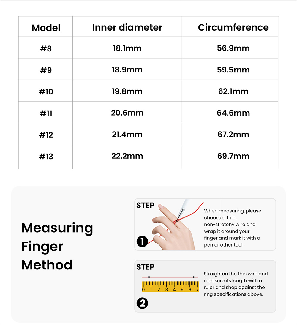 Sizes: 8#18.1mm, 9#18.9mm, 10#19.8mm, 11#20.6mm, 12#21.4mm, 13#22.2mm