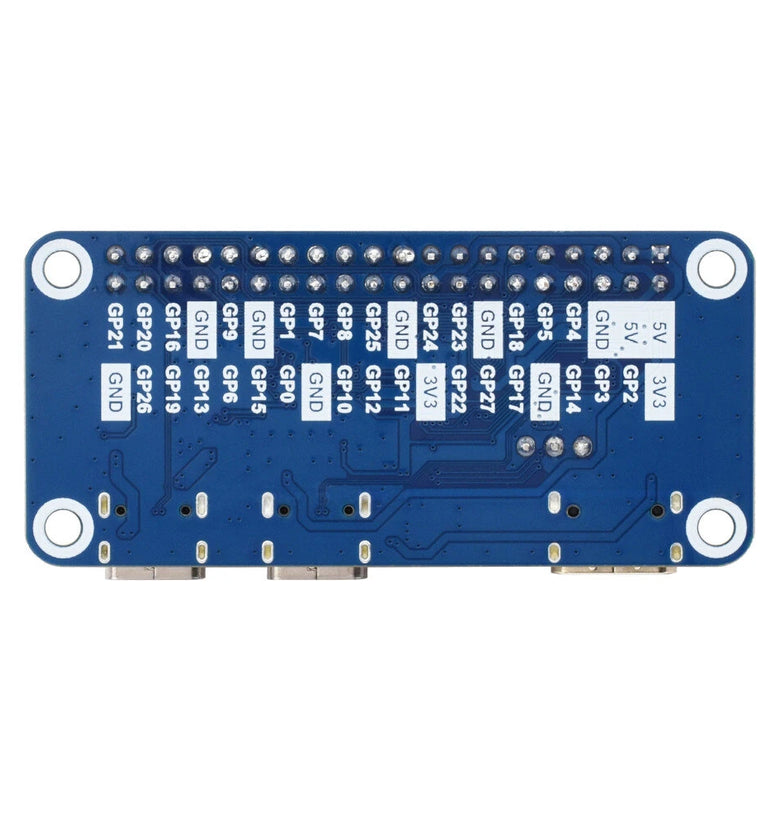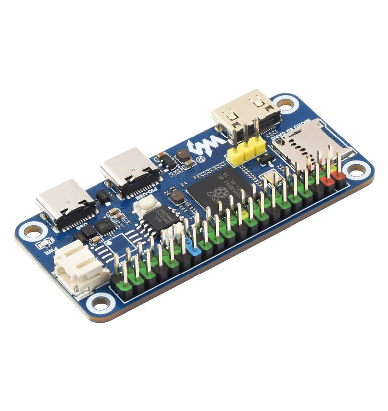 RP2350-PiZero is a high-performance and cost-effective microcontroller board, onboard DVI interface, TF card slot and PIO-USB port, compatible with Raspberry Pi 40PIN GPIO header, with reserved solder pads for PSRAM chip expansion, easy to develop and integrate into products.