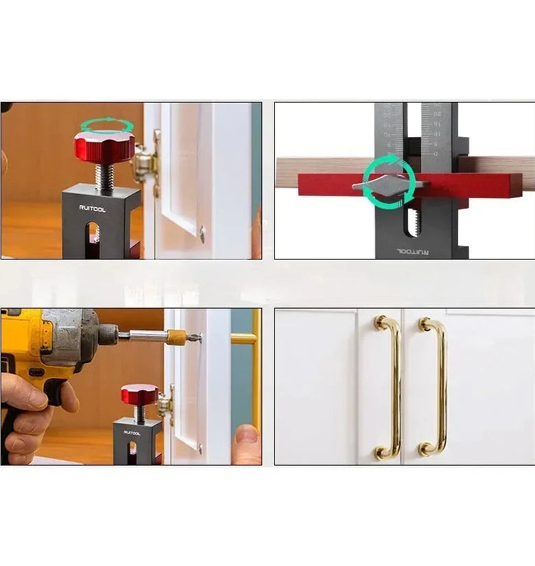 Aluminum Alloy Construction: Made from high-quality aluminum alloy, providing strength and stability for precise cabinet door installation tasks.