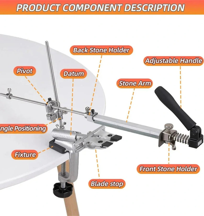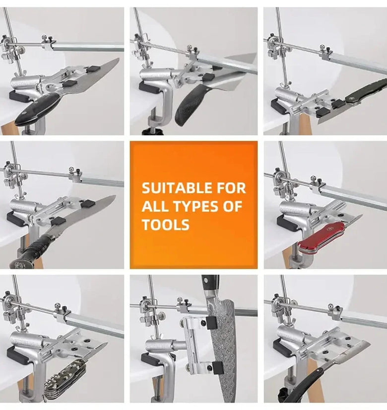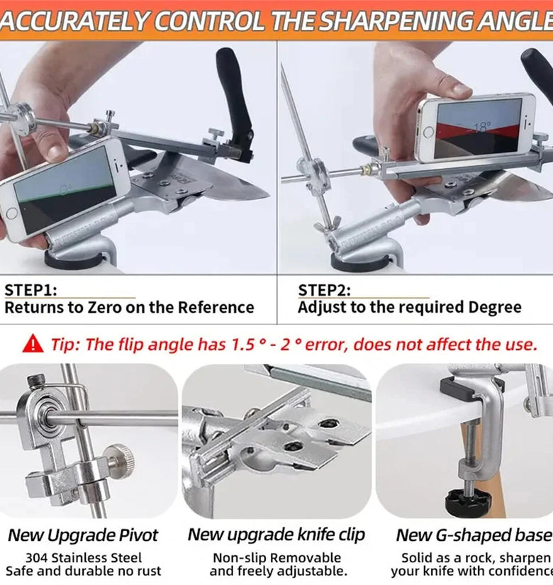 • RX-009 Professional Knife Sharpener with 4 Whetstones Dual Clamps 360 Rotation Flip Design Fixed-Angle Stainless Steel Kitchen Chef Knife Sharpening Kit Abrasive Holding System Tools
