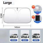 The Car Sun Visor is available in two sizes, both of which are lightweight and easy to store. The large size unfolds to 145 x 80cm with a net weight of 160g, while the small size unfolds to 142 x 70cm with a net weight of 145g. Each sun visor comes with a baffle and storage bag, allowing for convenient storage when not in use.