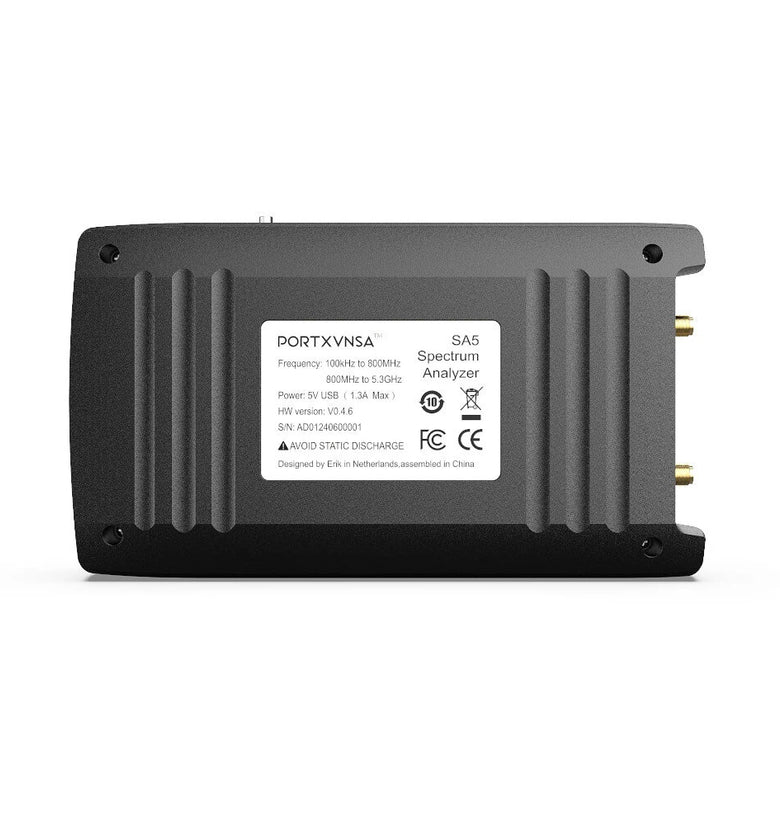 SA5 Product Features:Screen Size: 4 inches IPS LCD, featuring a large knob for easy operation.Spectrum Analyzer: Normal mode:0.1-800MHz, Ultra mode:provides level calibration up to 5.3GHz, and can observe signals up to 12GHz. Signal Generator: Outputs sine waves between 0.1-800MHz, square waves up to 4.4GHz, or RF test signals up to 5.3GHz when not used as a spectrum analyzer.Switchable resolution bandpass filters: from 200Hz to 850kHz.Optional LNA: Built-in 20dB Low Noise Amplifier (LNA).Spectrum Display: Display up to 450 points, Display four independently configured traceStorage: MicroSD card slot for storing measurements, settings, and screen captures(SD card Not includes).