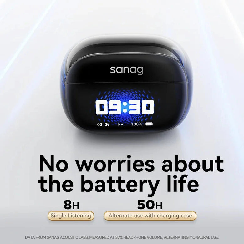 • Sanag S3 Pro TWS bluetooth Headset AI Smart Screen Earphone LED Touch Screen 360 Stereo Bass DT6.0 AI Noise Cancelling 50H Playback Earclips Wireless Headphones