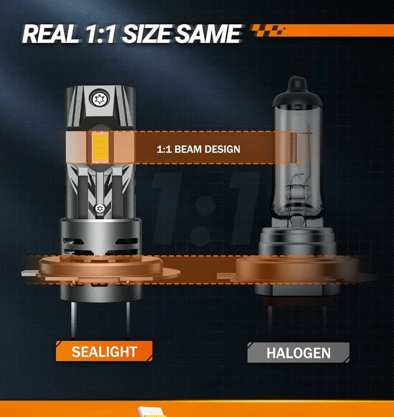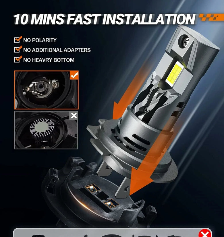 --Perfect beam pattern: 1:1 mini size, like halogen bulb. H7 LEDs illuminate the road without dazzling other drivers and extend the range to avoid accidents. Easily travel through suburbs and highways.