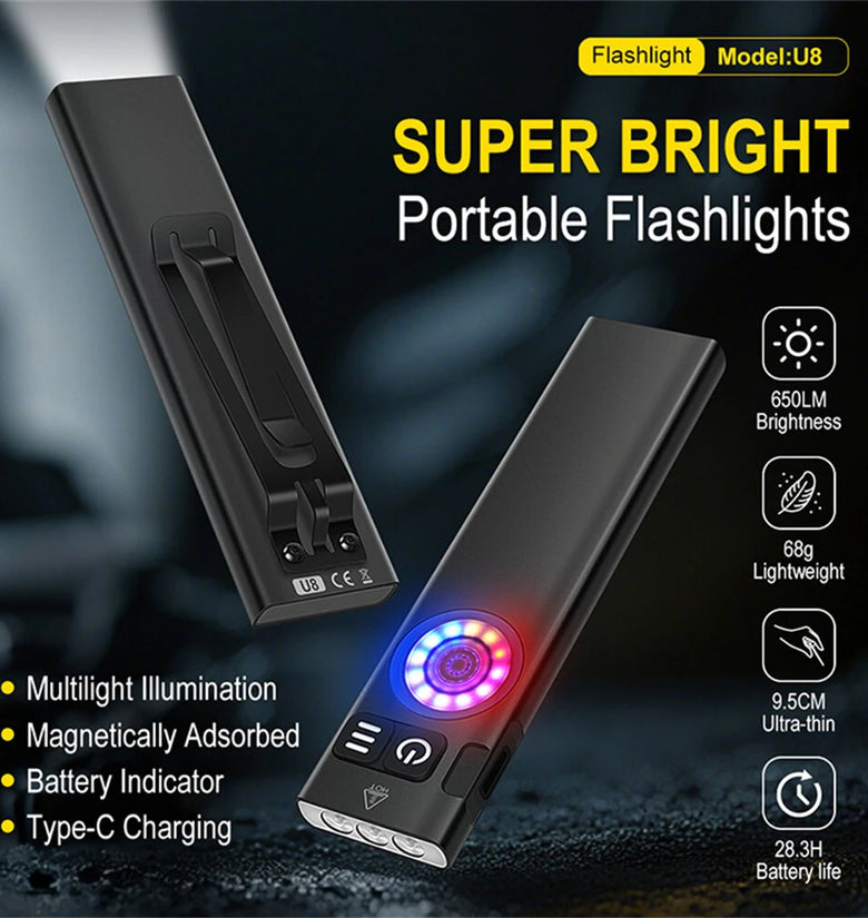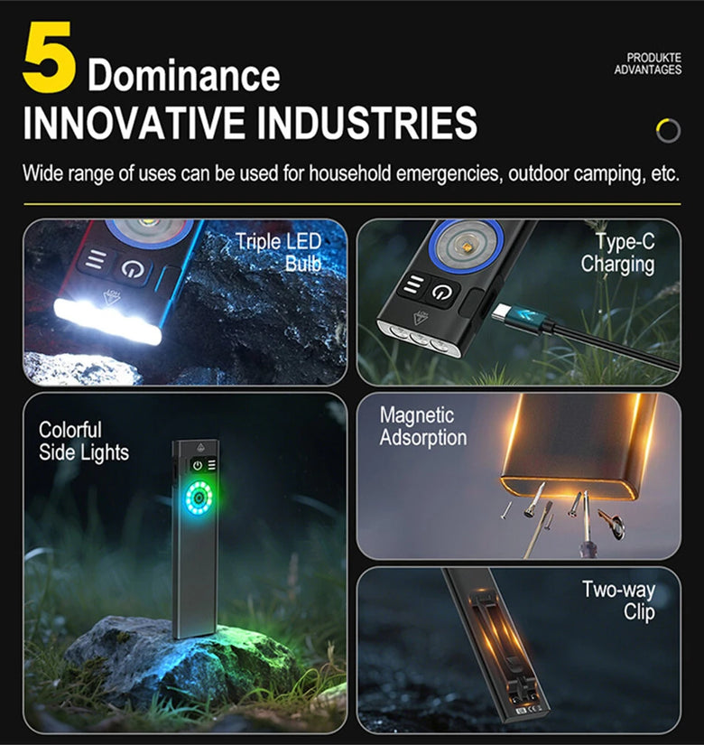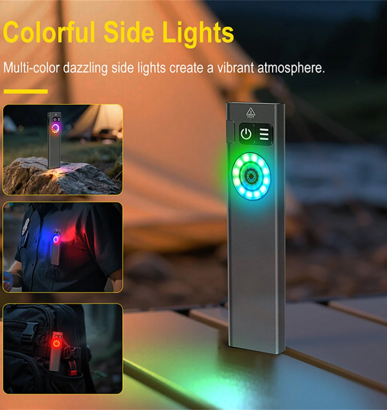 5.Fast USB-C Charging & Safety Features – Fully recharges in about 2 hours via included 0.5 m black Type-C cable. Intelligent charging indicator (red flashing while charging, blue when full) plus multiple signal modes (Strobe, SOS, police flash) make it ideal for camping, signaling, repairs, and safety use.