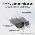 IP65 Waterproof: With an IP65 waterproof rating, these smart glasses are designed to withstand splashes, rain, and dust, making them suitable for various outdoor activities, even in challenging weather conditions.