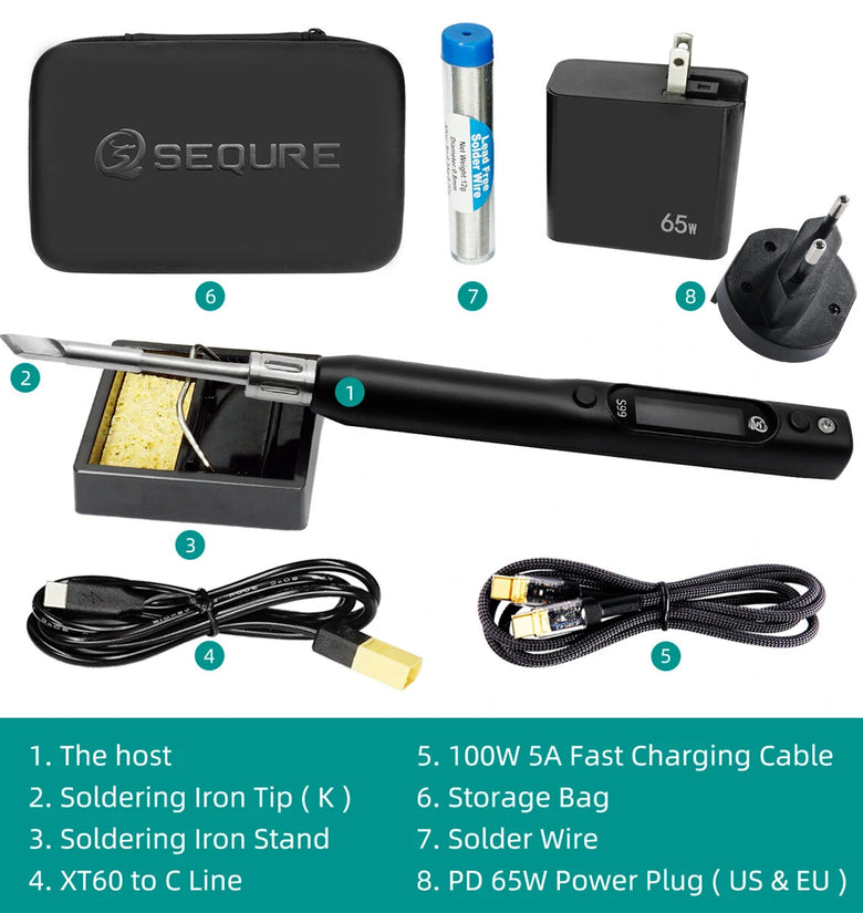 • SEQURE S99 Soldering Iron Support PD|QC|DC|PPS Power Supply Compatible with C245 Tip for Drone RC Model Welding Repair Tool Anti-static Welding Pen