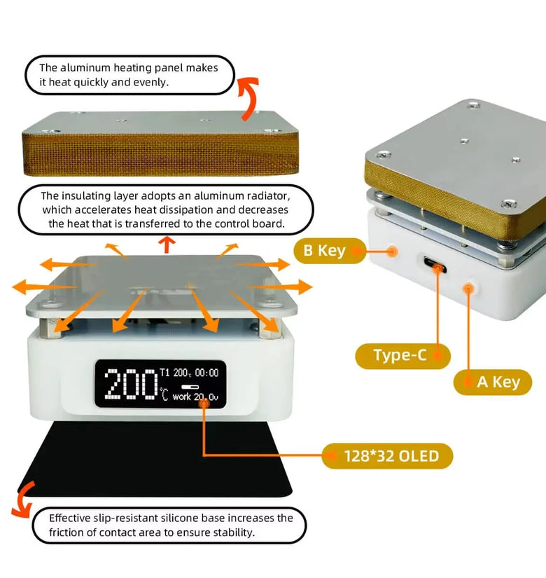 1. Precise Temperature Adjustment: Offers a versatile temperature range from 50℃ to 280℃ (122℉ to 536℉), ensuring adaptability for various PCB SMD rework and LED lamp desoldering needs.