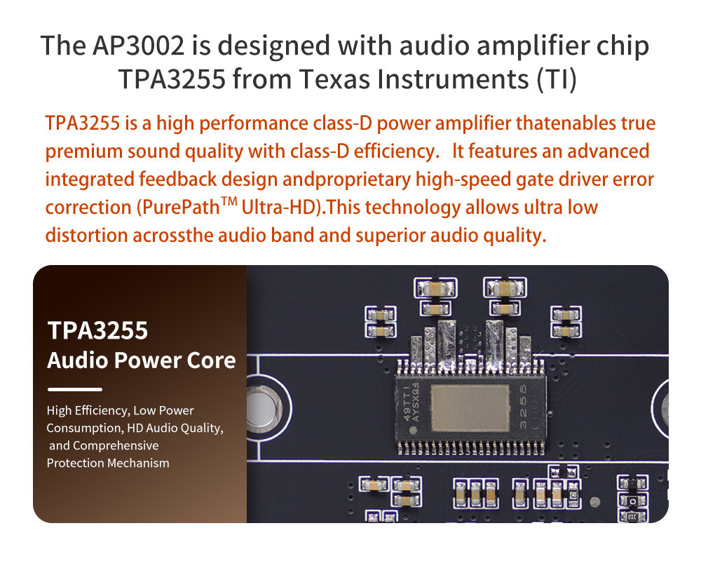 1. High Power Output: Equipped with a TPA3255 power amplifier chip, delivering up to 300W x 2 for powerful stereo sound or 600W in bridge mono mode for an impressive audio experience.