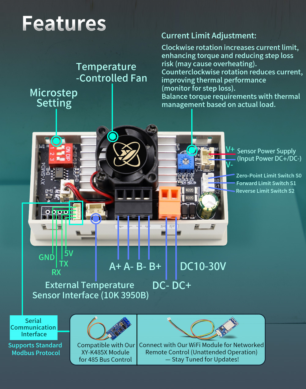 1. Wide Compatibility: Compatible with 42 and 57 stepper motors, ensuring flexible integration with diverse motor types for applications requiring precision.