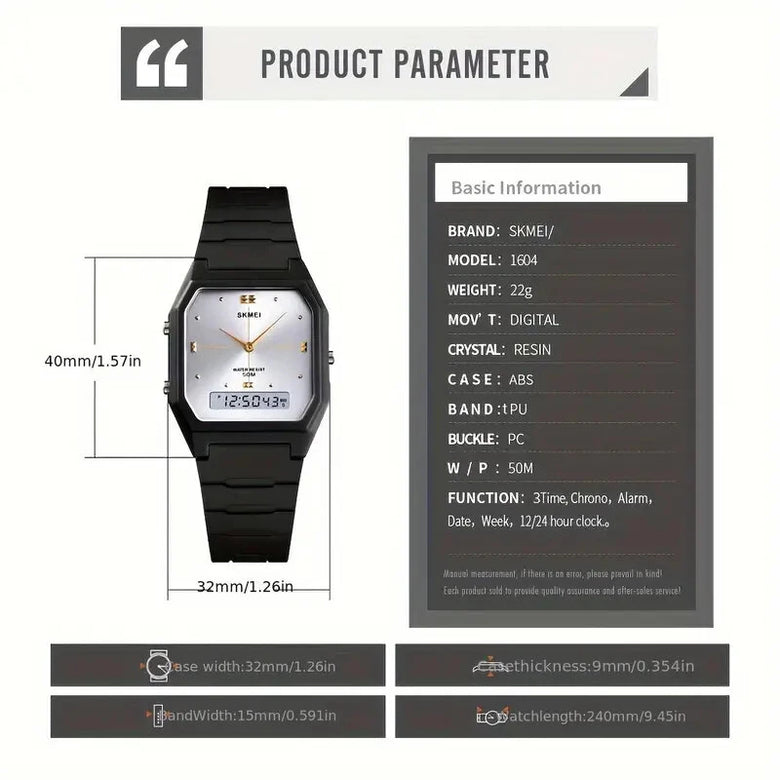 • SKMEI Fashion Men Digital Watches Outdoor Multifunctional Watch Sports Waterproof Dual Display 3 Time Electronic Watch