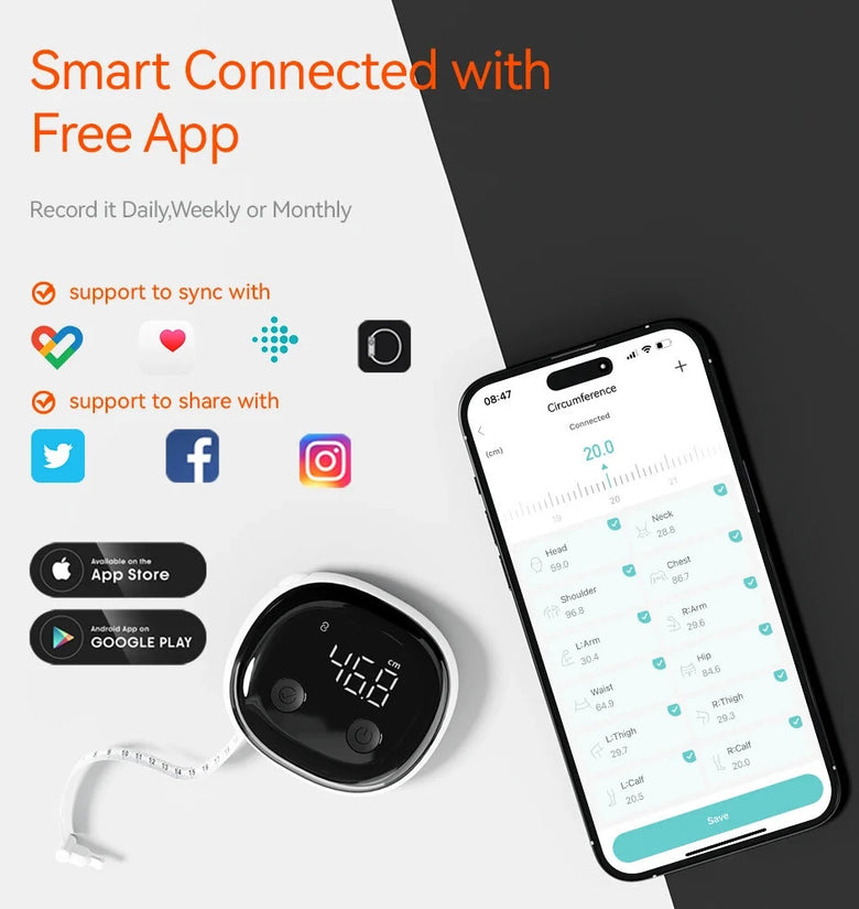 App Integration: Syncs with a dedicated fitness app for seamless tracking and analysis of body measurements over time.