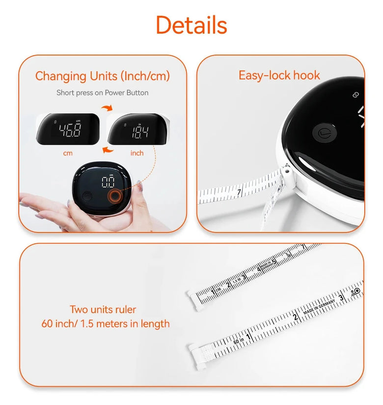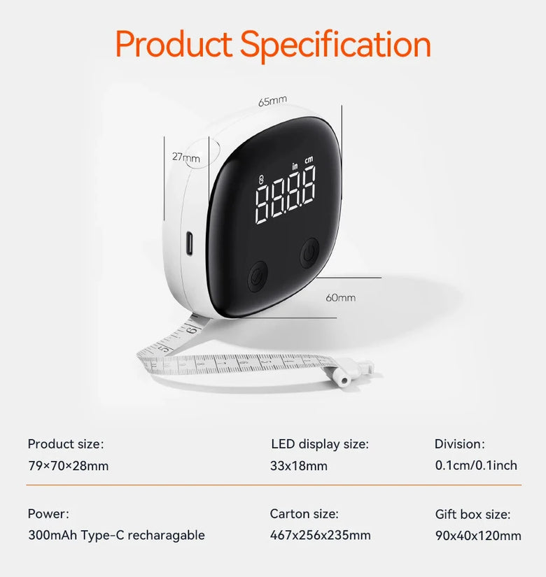 LED Display: The clear LED display (33 x 18 mm) ensures easy reading of measurements in both inches and centimeters.