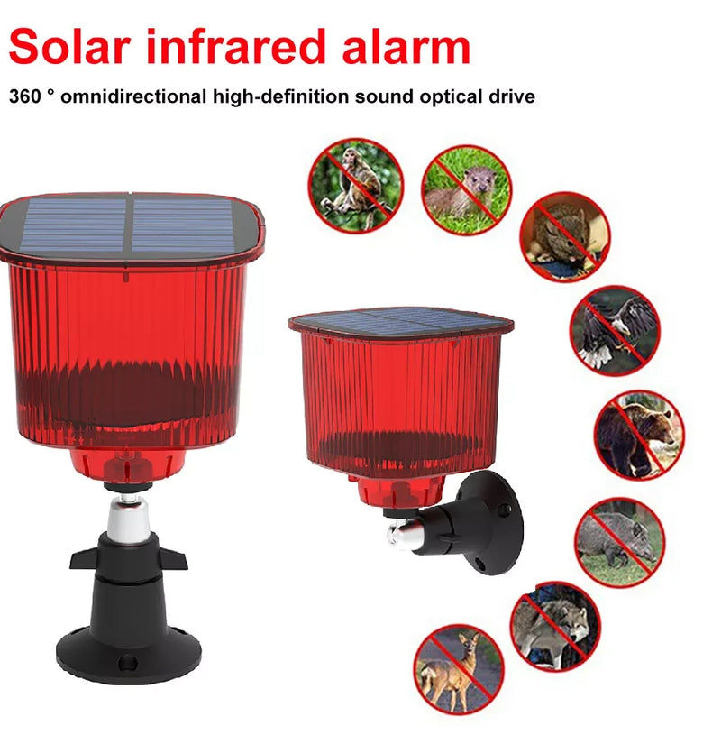 • Solar Powered Animal Repeller Infrared Motion Sensor Alarm Light Waterproof Anti-Theft Repellent Anti-Wolf Light Animal Repellent Timed Recording Loud Speaker Sound