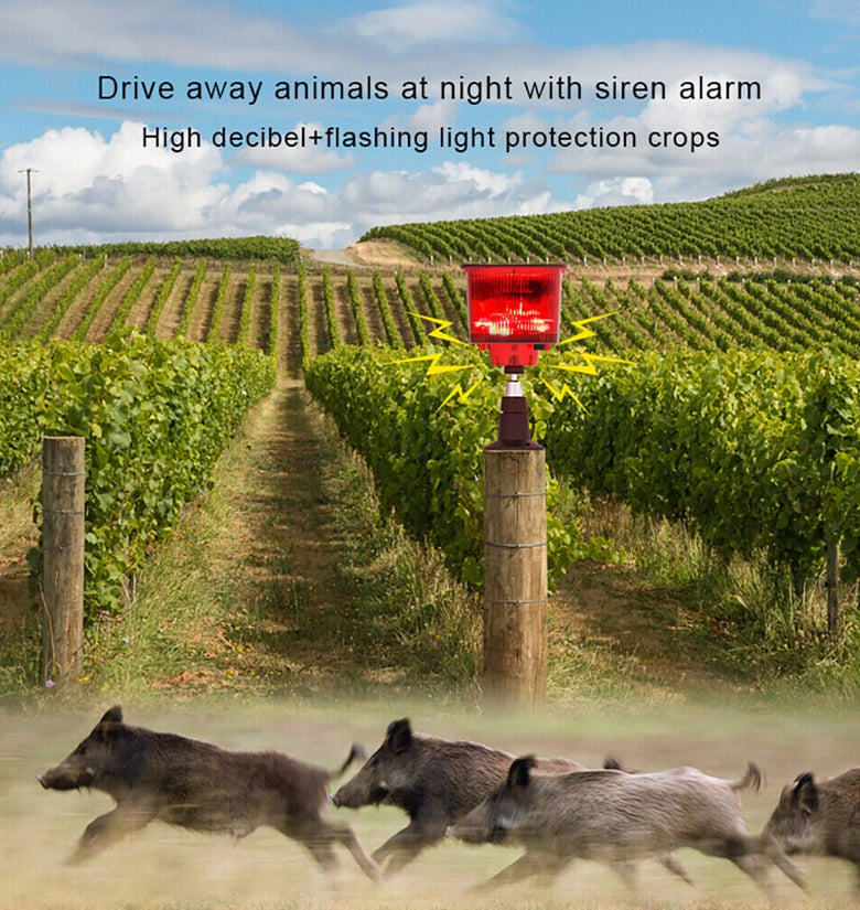 - Effective Day and Night Protection: Solar charging powers activities during the day, while the device continues to repel animals at night with high-volume sounds and flashing lights, ensuring round-the-clock protection for your crops and property.