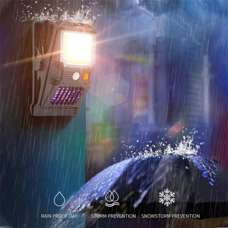 3 Lighting Modes:Long press to switch between white light and warm light.Mode 1: At night, motion detected, bright light on for 25s.Mode 2: At night, motion detected, bright light on for 25s; no motion detected, mosquito killing purple light on.Mode 3: At night, mosquito killing purple light and white light always on.