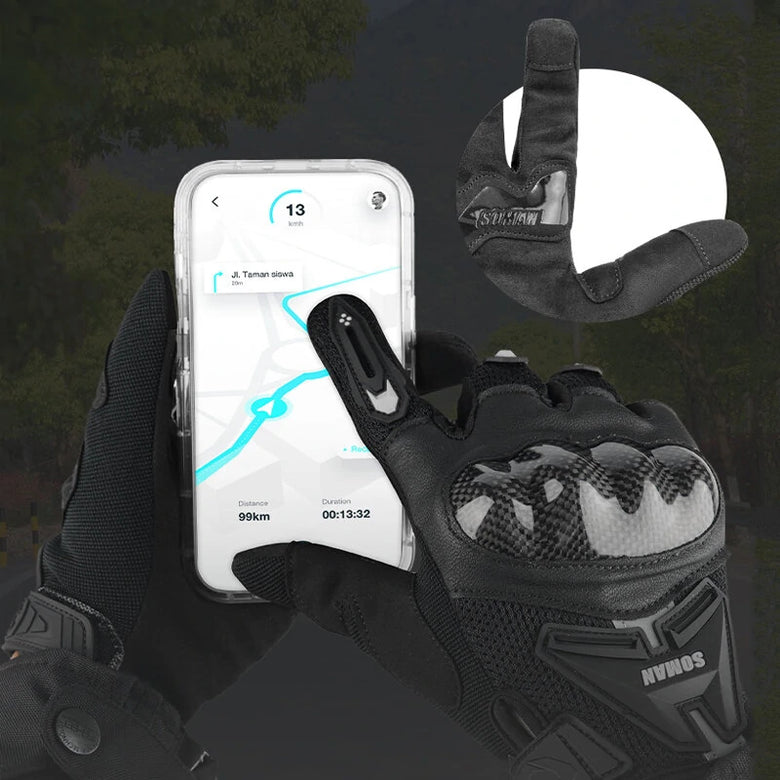 --Touch Screen Compatible: The glove has a special touch screen compatible feature. The conductive fabric on the index finger allows you to seamlessly operate your smartphone or GPS device without taking off the glove. Now you can navigate a route, take a call or change your music while wearing gloves and protecting your hands.