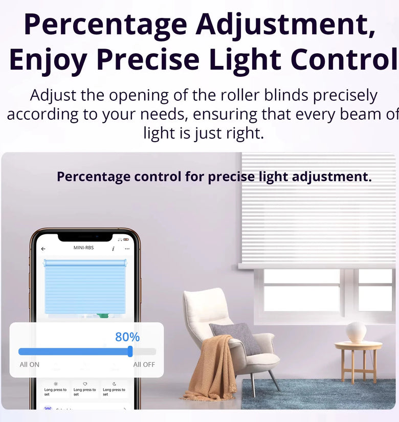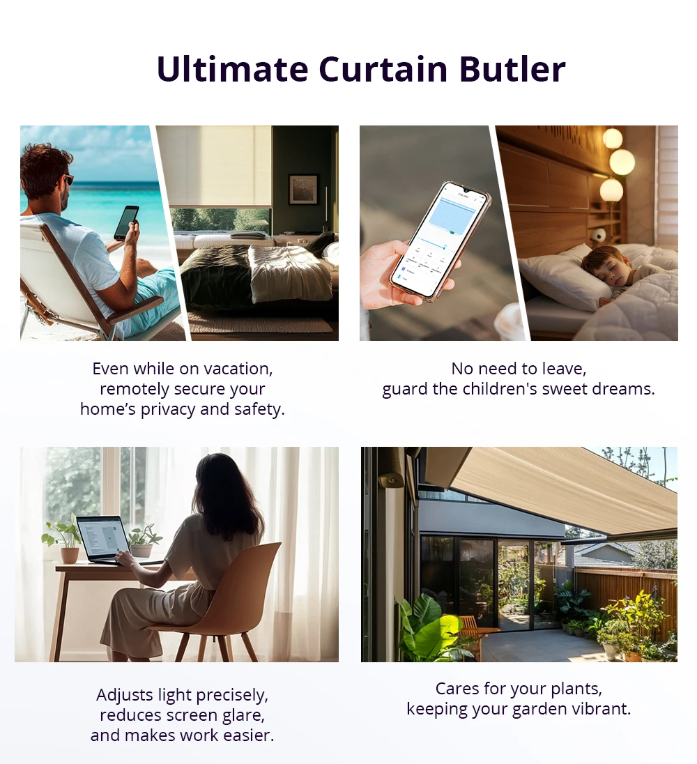 1. Smart Scheduling and Control: Enables percentage-based adjustment for precise curtain positioning.