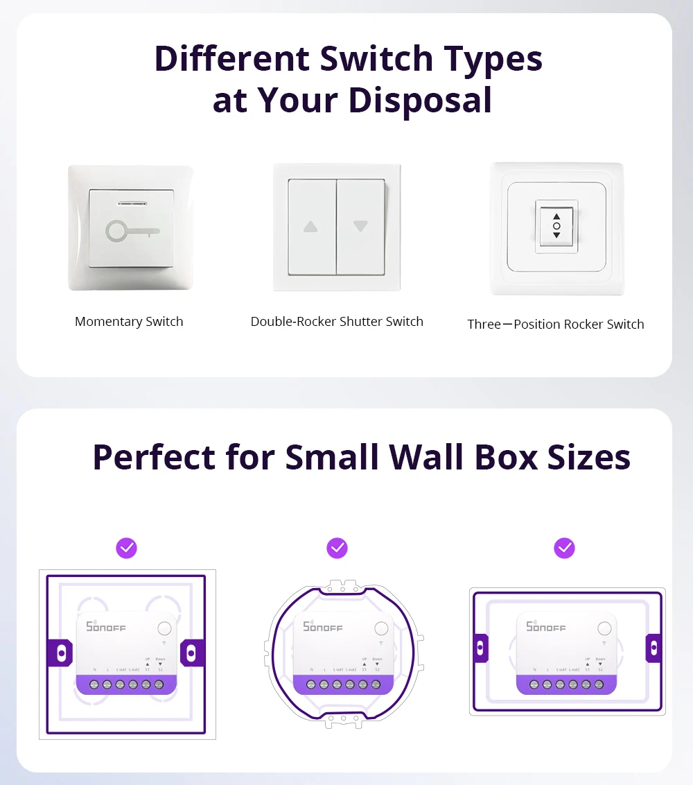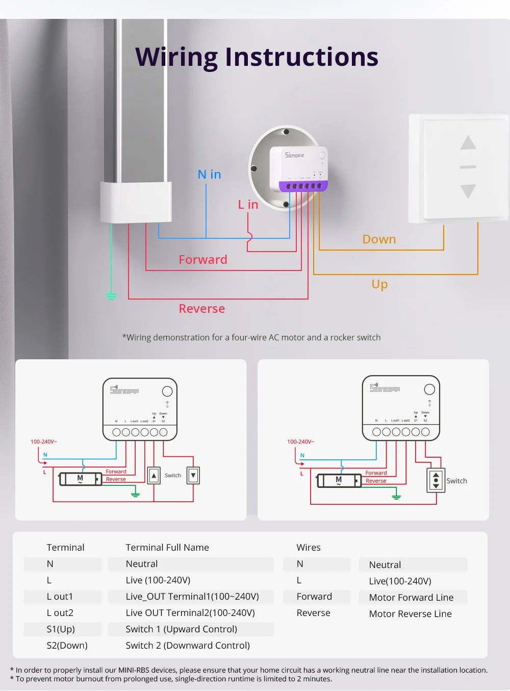 1x SONOFF MINI-RBS Smart Roller Shutter Switch