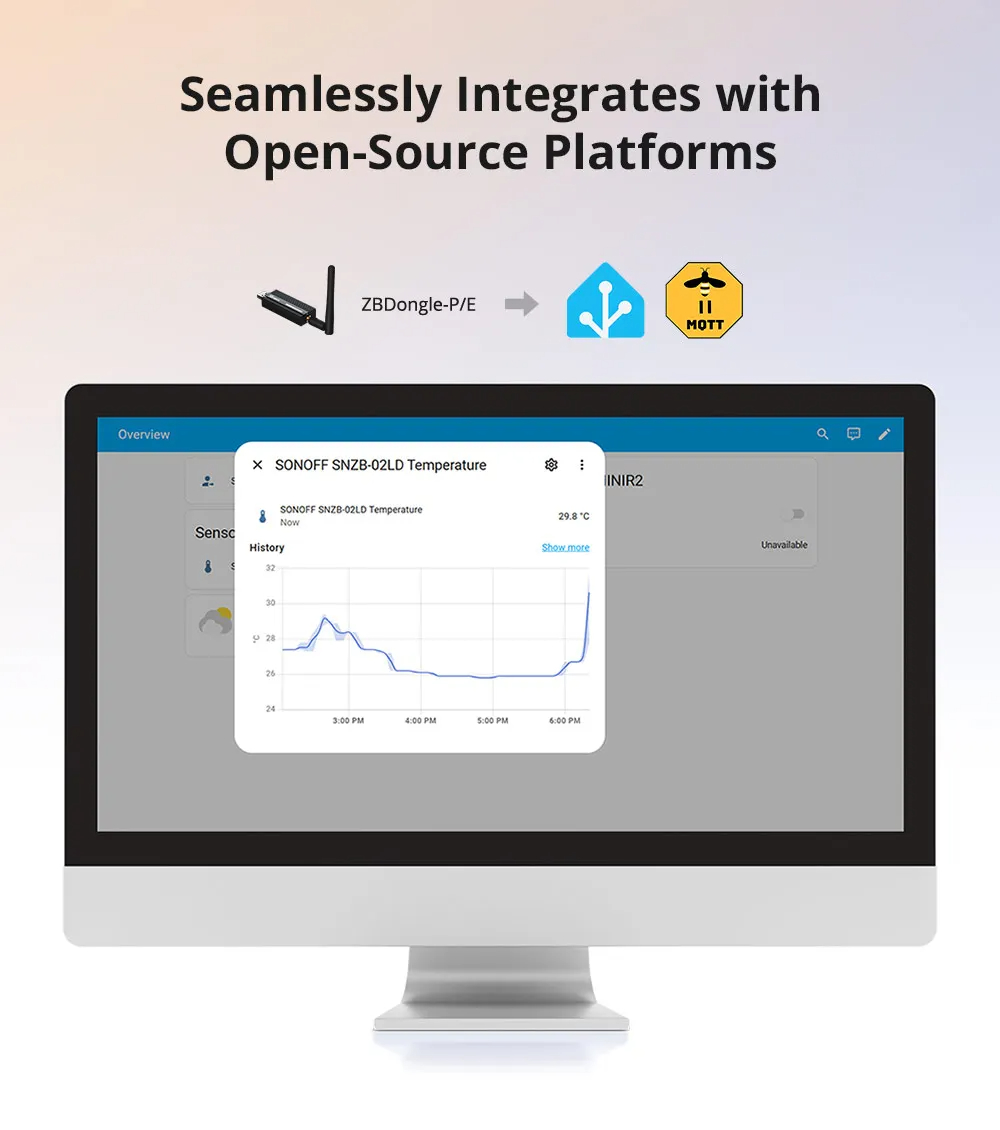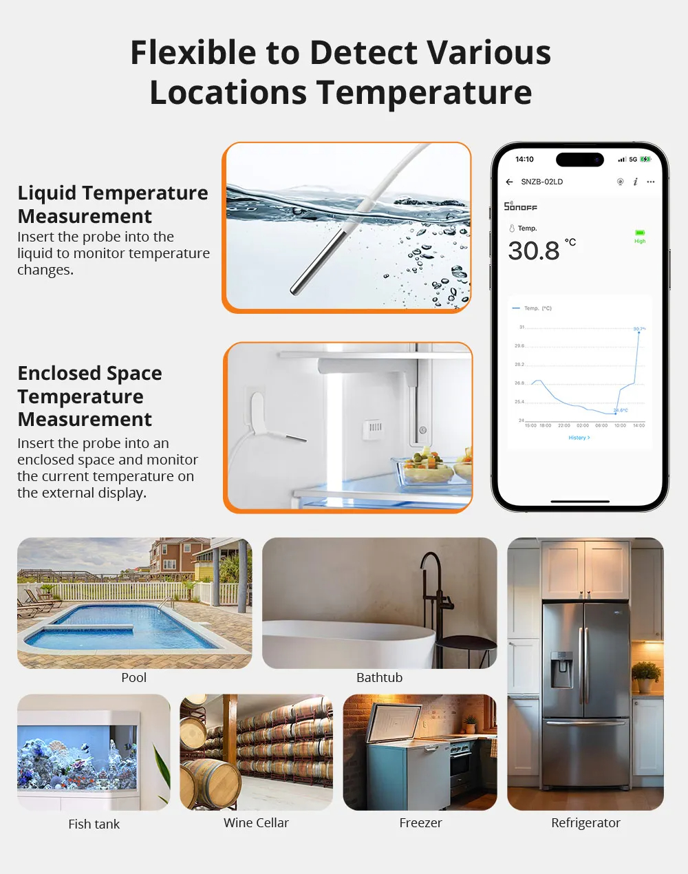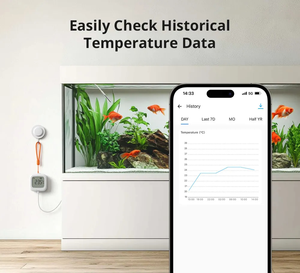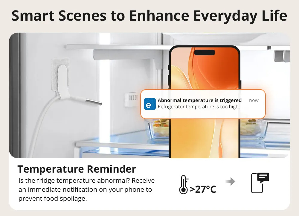 • SONOFF SNZB-02LD Zigbee3.0 LCD Smart Thermometer with Probe IP65 Waterproof for Fridge Pool Fish Tank Wine Cellar via ZBBridge-P