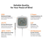 2. Wide Temperature Range: Designed with a 304 stainless steel probe to measure temperatures between -40°C and 115°C.