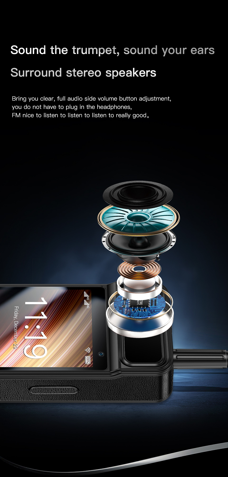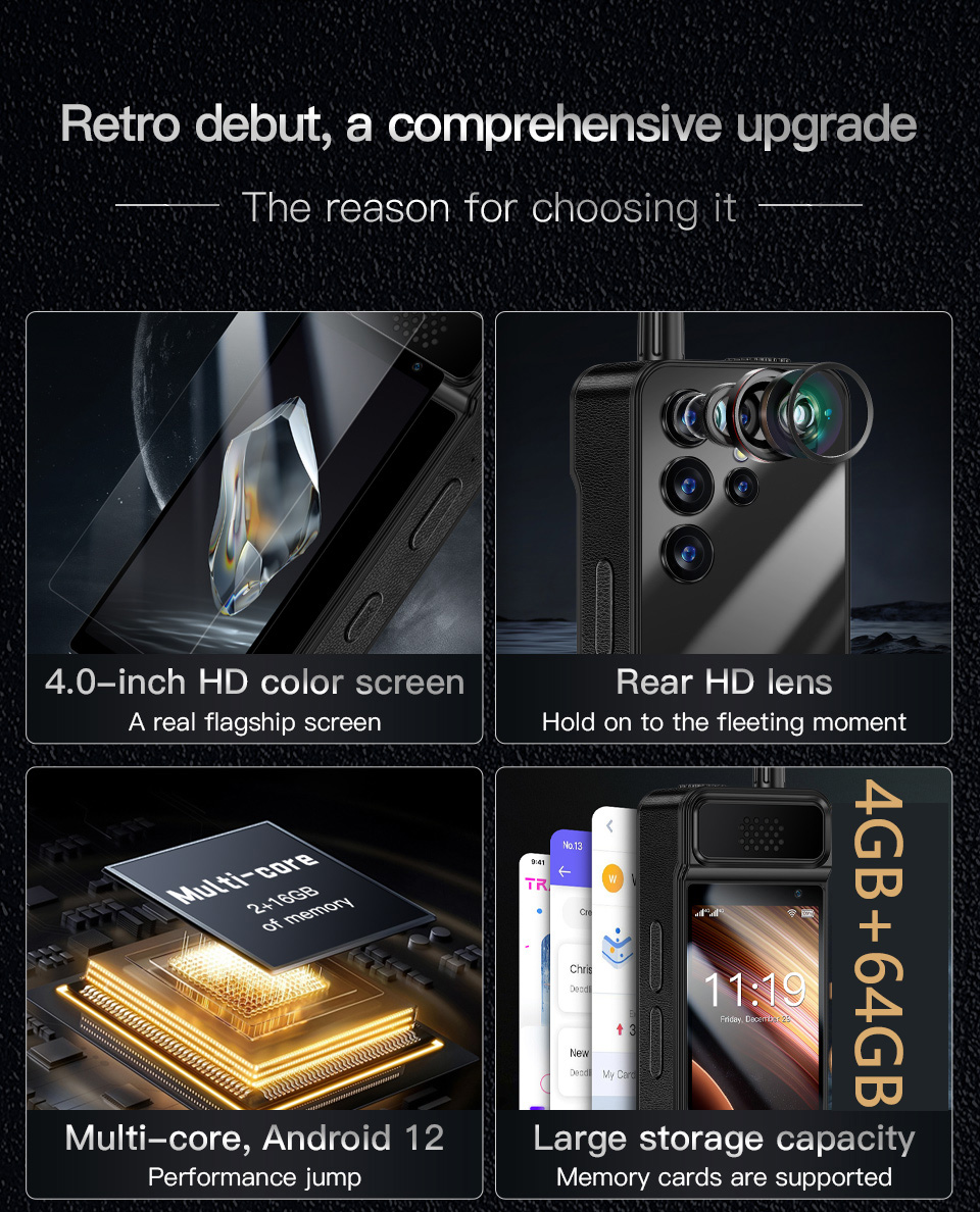 OS: Android 12.0 CPU: MT6739CW Quad-core 1.28GHz RAM: 4GB RAM ROM: 64GB ROM Card Extend: Supports an external TF card up to 128GB |