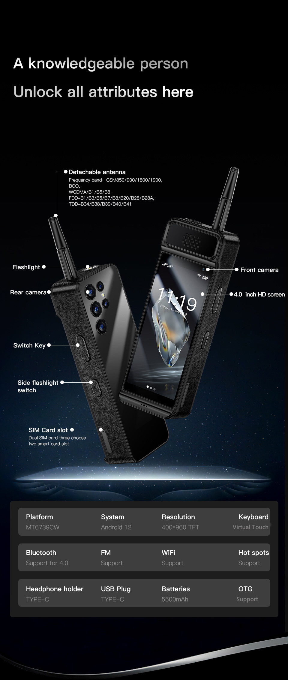 Display Size: 4.0 inch Resolution: 400*960px |