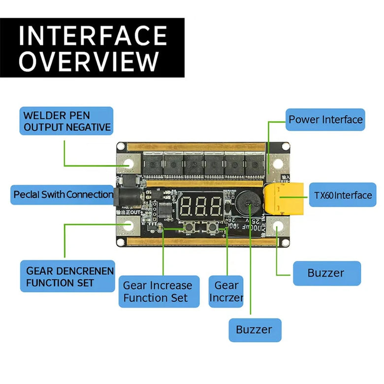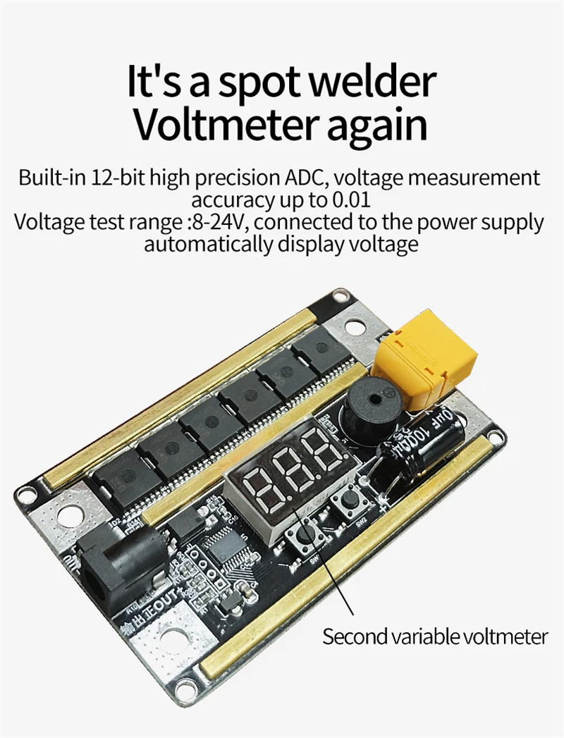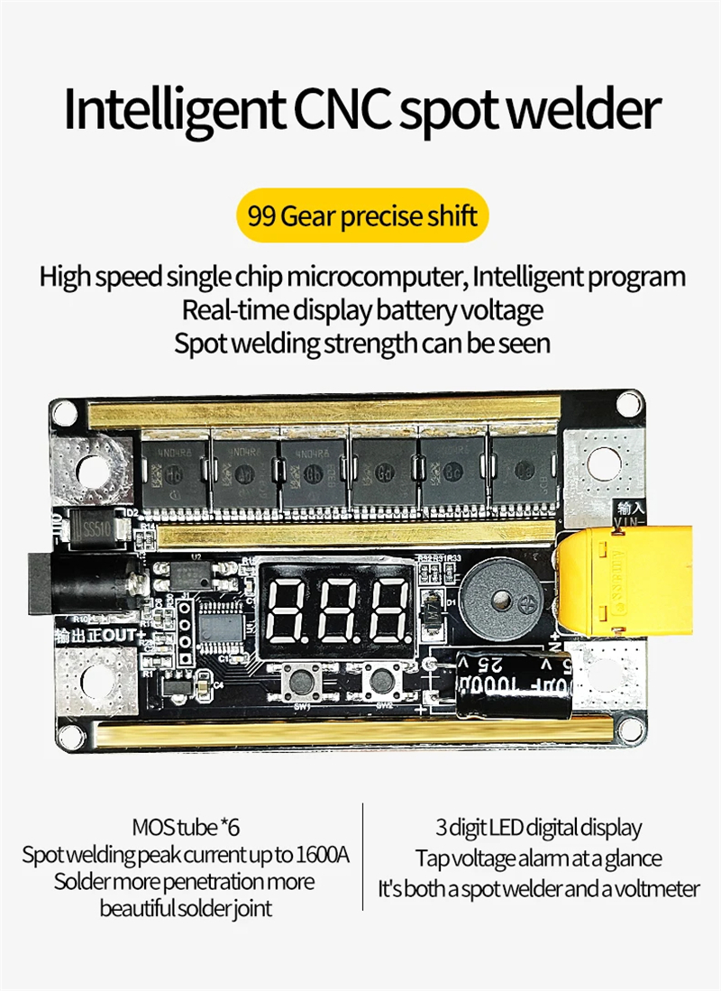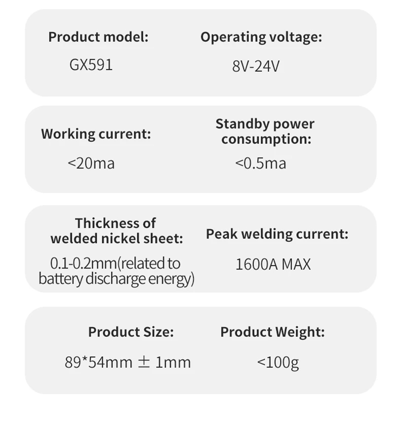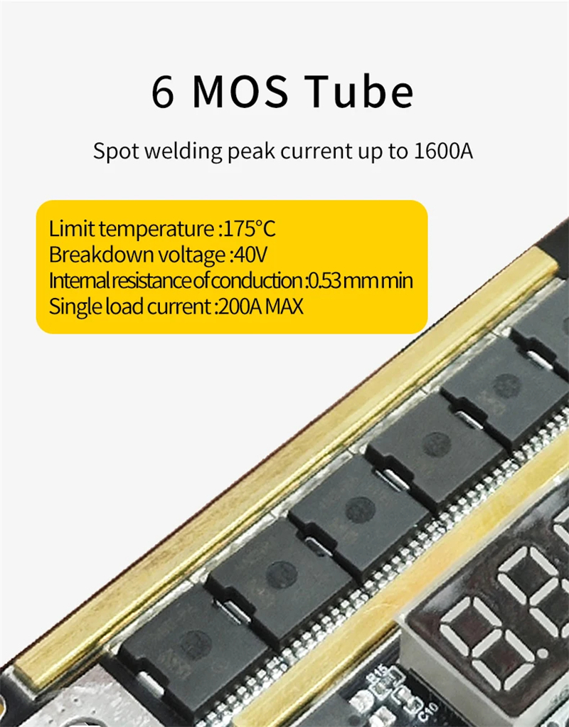 4) High Welding Current Design: Powered by 6 MOS transistors, delivering up to 2400A peak current for reliable performance with 0.1-0.2mm nickel sheets.