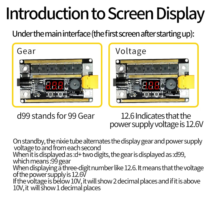 3) Digital Display: Includes a 3-digit display that alternates between power levels and real-time voltage readings for enhanced operational clarity.