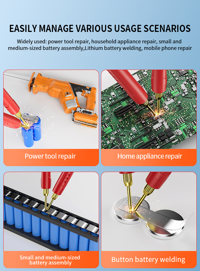 5.Wide Application Range: Perfectly suited for mobile phone repair, metal splicing, or battery assembly, with effectiveness on weldable materials up to 0.4mm thickness.