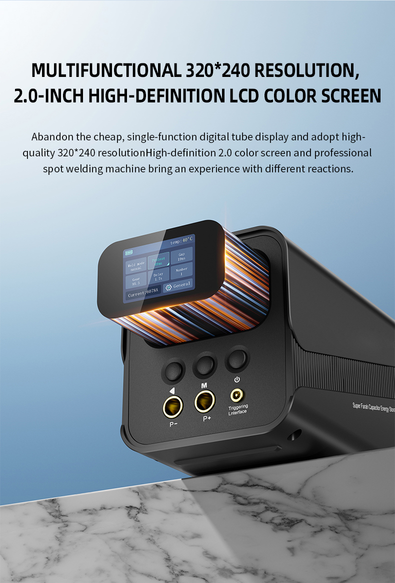4.Supercapacitor Energy System: Built with advanced capacitor technology delivering steady output (up to 2000A current), maximizing accuracy and reducing overheating risks during use.