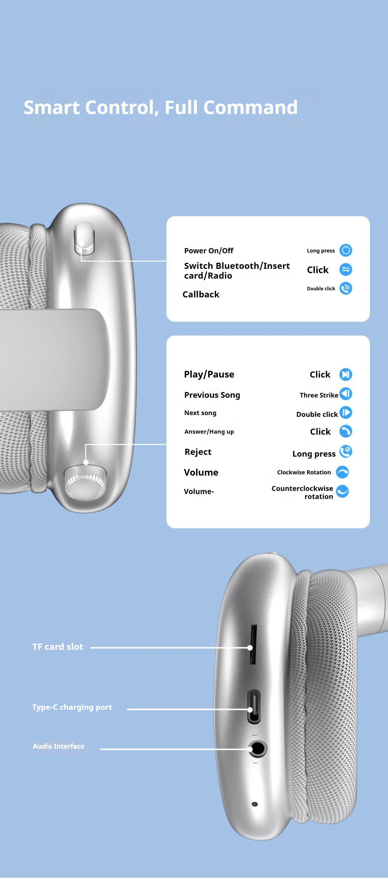 1x Headphone 1x AUX Cable 1× Type-C Charging Cable |