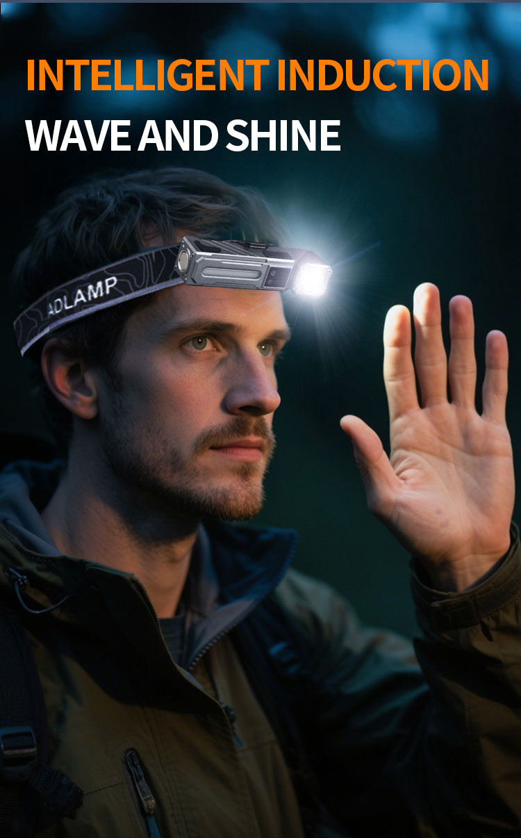 T130 Motion Sensor Multifunction LED Headlamp with Digital LCD Display Dual Light Source Magnetic Attraction Waterproof Work Lamp for Camping Hiking Cycling