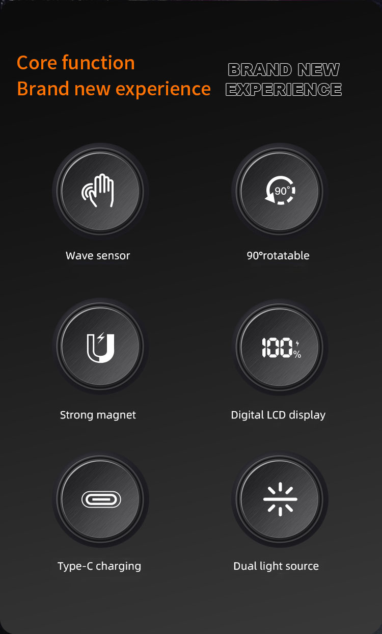 2. Wave sensor control: Enables effortless activation and adjustment with hand gestures.