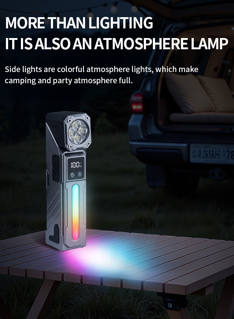 4. Colorful RGB side lights: Deliver immersive ambient lighting, ideal for camping or parties.