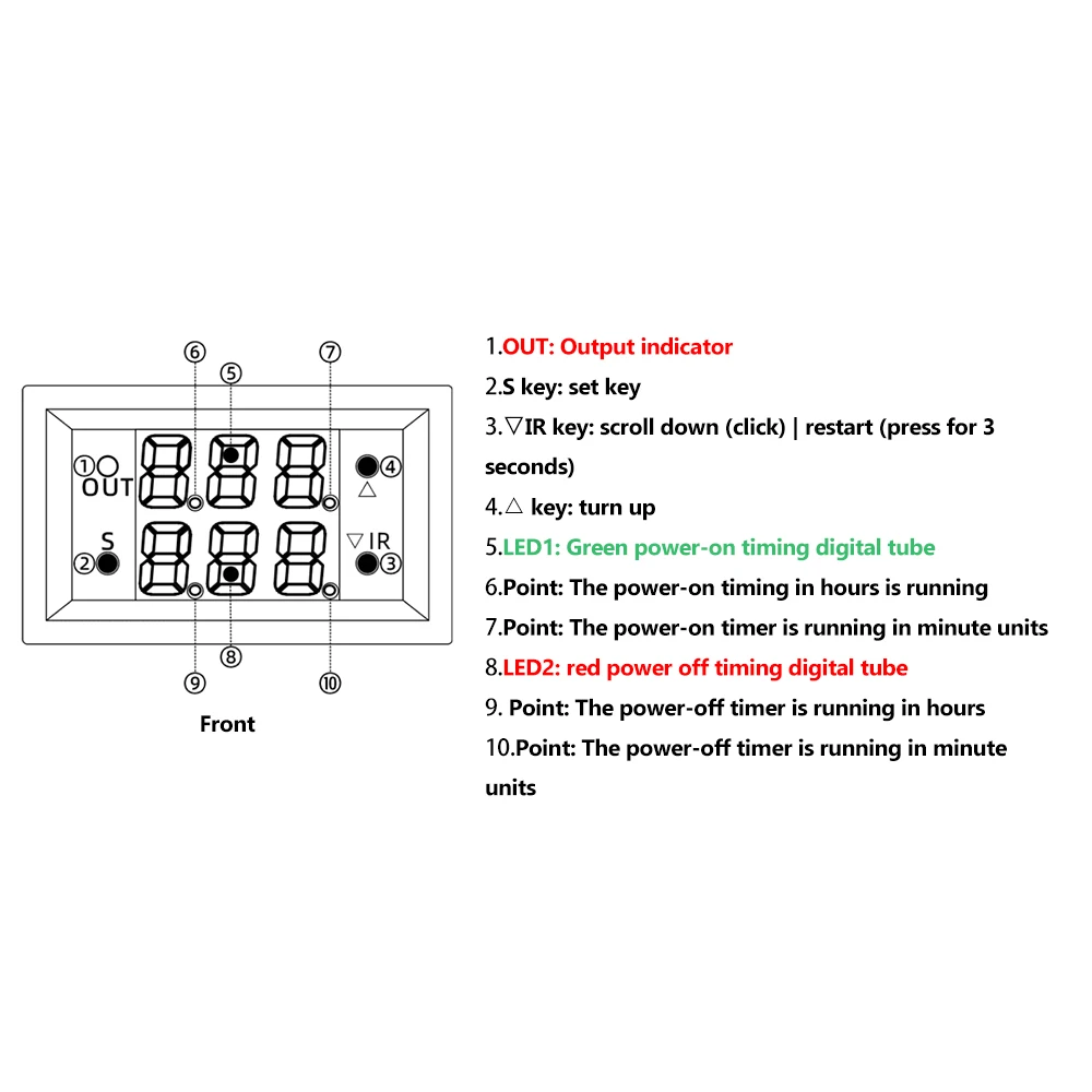Timing range: 0~999 (seconds, minutes, hours) Minimum unit: 1 second