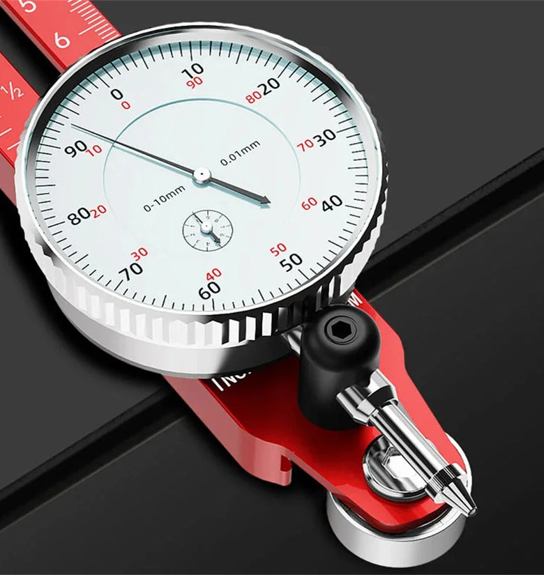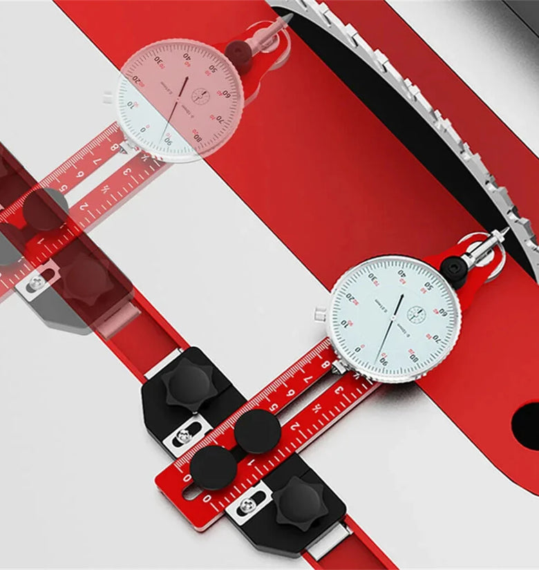 High Precision: Equipped with a dial indicator for accurate alignment and calibration of table saw blades, ensuring precise cuts.