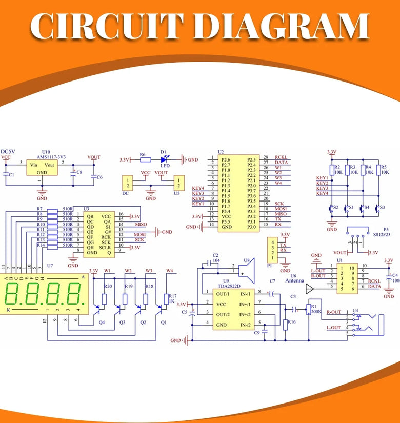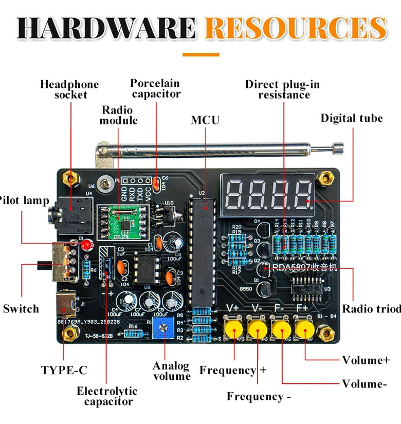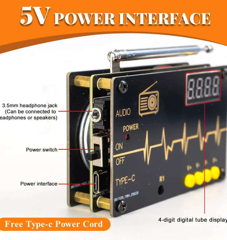 1. High Sensitivity FM Reception: Equipped with the RDA5807M FM chip, the product ensures excellent reception quality with minimized noise and interference, covering a comprehensive frequency range of 87-108MHz.