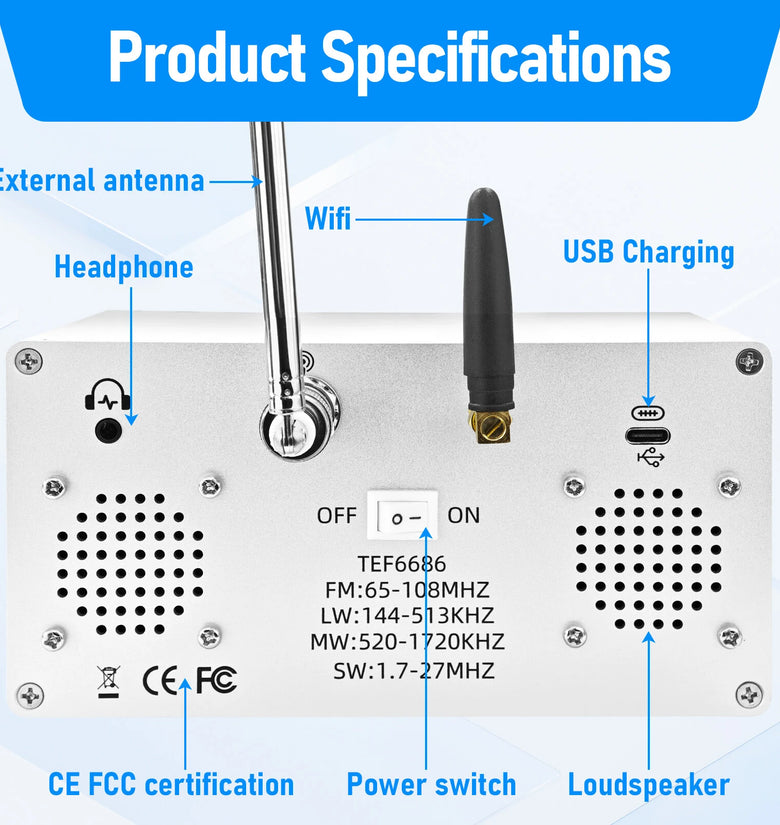 1.Multi-Band Functionality: This receiver covers FM, LW, MW, SW bands, along with DSP and SDR compatibility, delivering versatile performance for global radio enthusiasts.